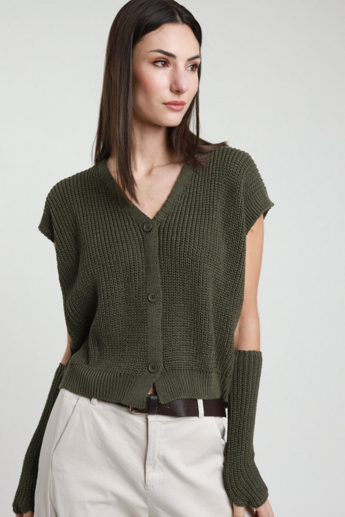 Knitted Vest with Sleeves, Button Closure. 50%co 50%pc