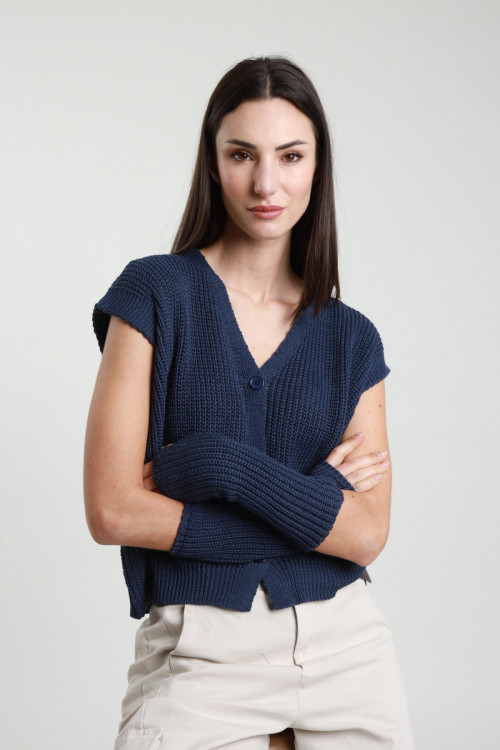 Knitted Vest with Sleeves, Button Closure. 50%co 50%pc