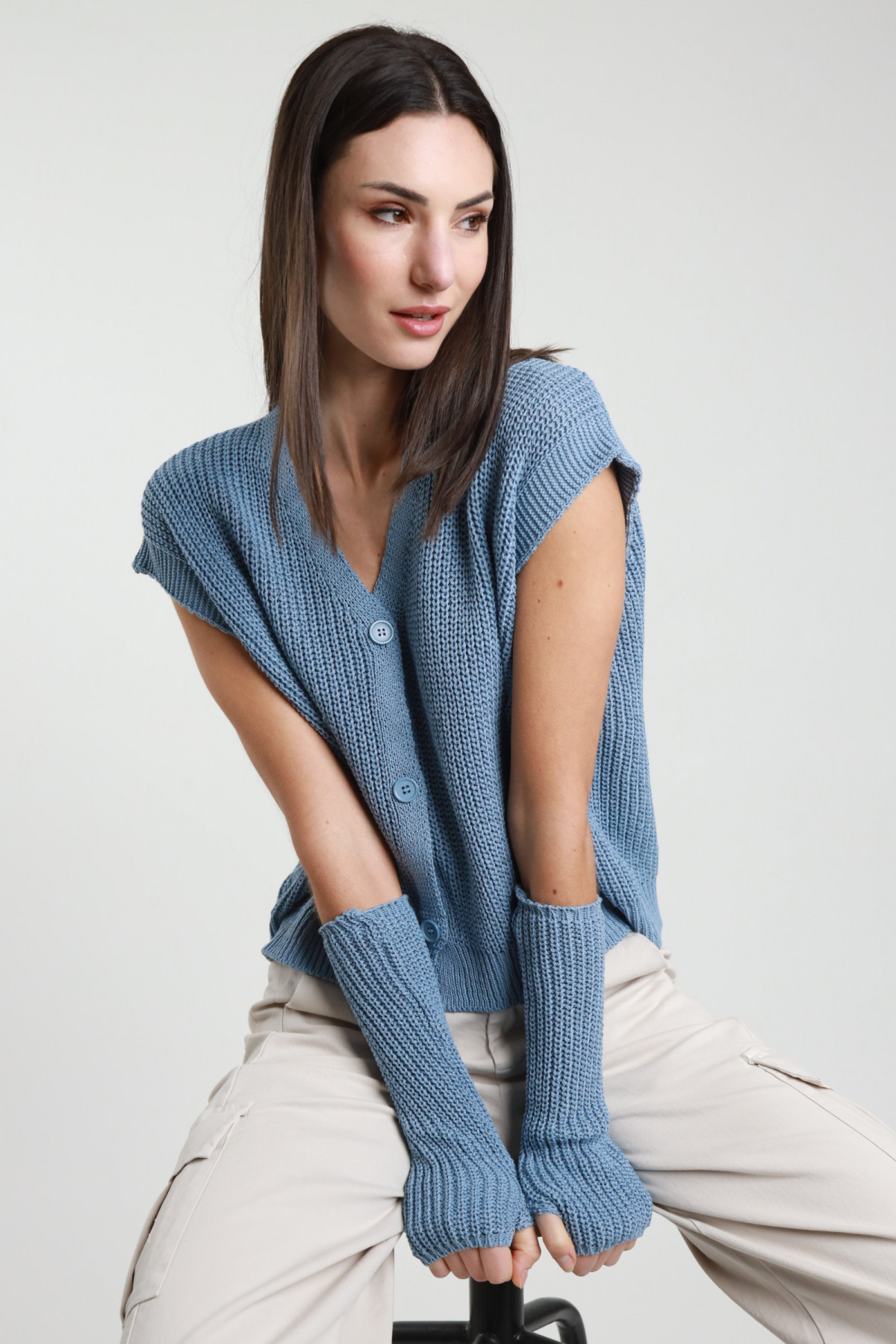 Knitted Vest with Sleeves, Button Closure. 50%co 50%pc