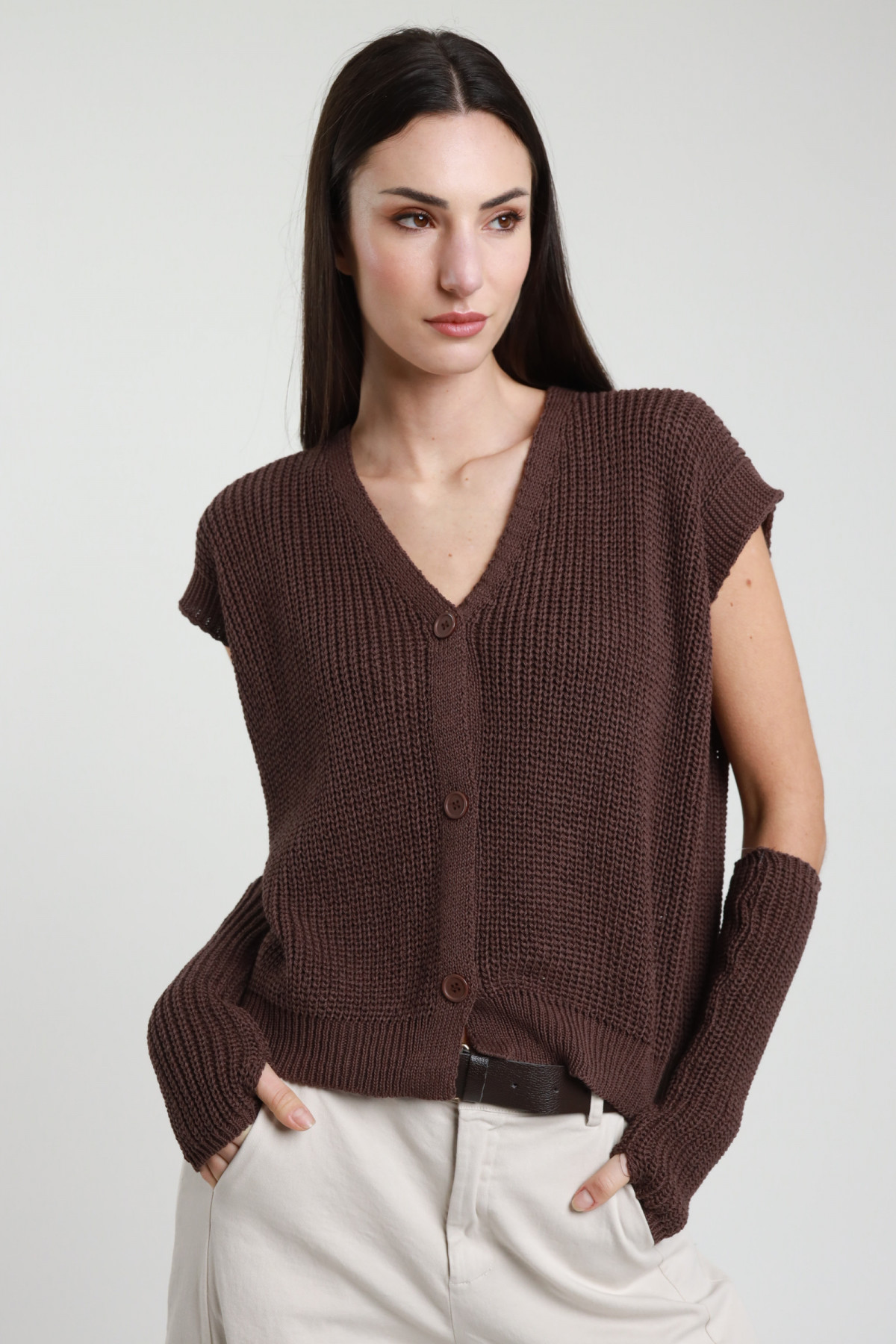 Knitted Vest with Sleeves, Button Closure. 50%co 50%pc