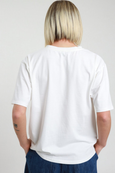 Oversized Polo Shirt with Half Sleeves in Fleece with Jewel Buttons. 72%co 20%pl 8%ea