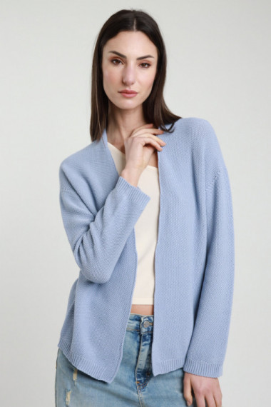 Open Cardigan in Rice Stitch Cotton Knit. 100% co