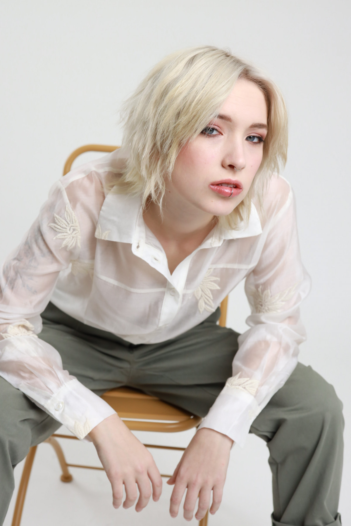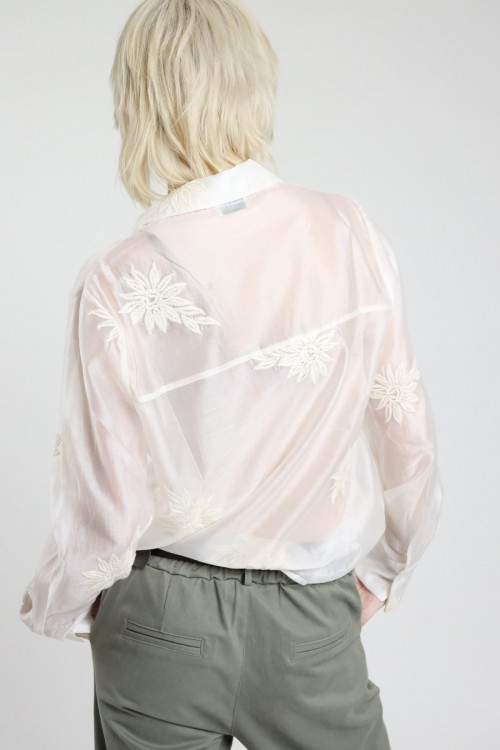 Semi-transparent Shirt with Floral Embroidery. 85%tn 15%pl
