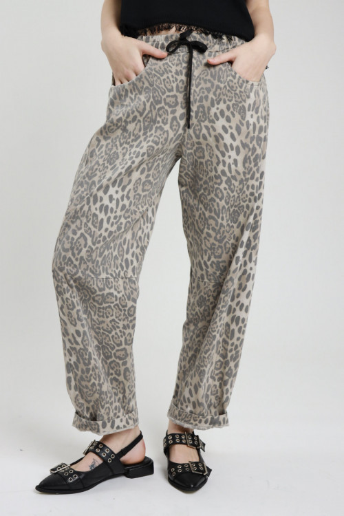 Cotton trousers with drawstring waist, spotted animal print. 100%co