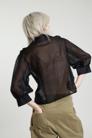 Camicia Semitrasparente con Rouches sui Polsi in Fantasia Floreale.