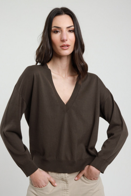 Cotton sweater with V-neck and ribbed edges. 100%co