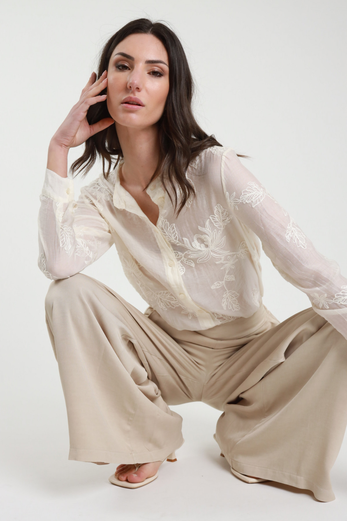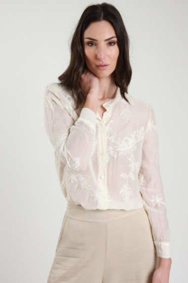 Camicia coreana c/ricamo 75%ly 25%ny+75%ly 25%pa