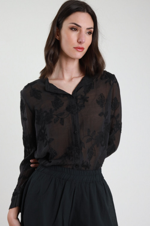 Camicia coreana c/ricamo 75%ly 25%ny+75%ly 25%pa