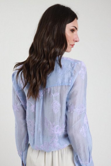 Camicia coreana c/ricamo 75%ly 25%ny+75%ly 25%pa