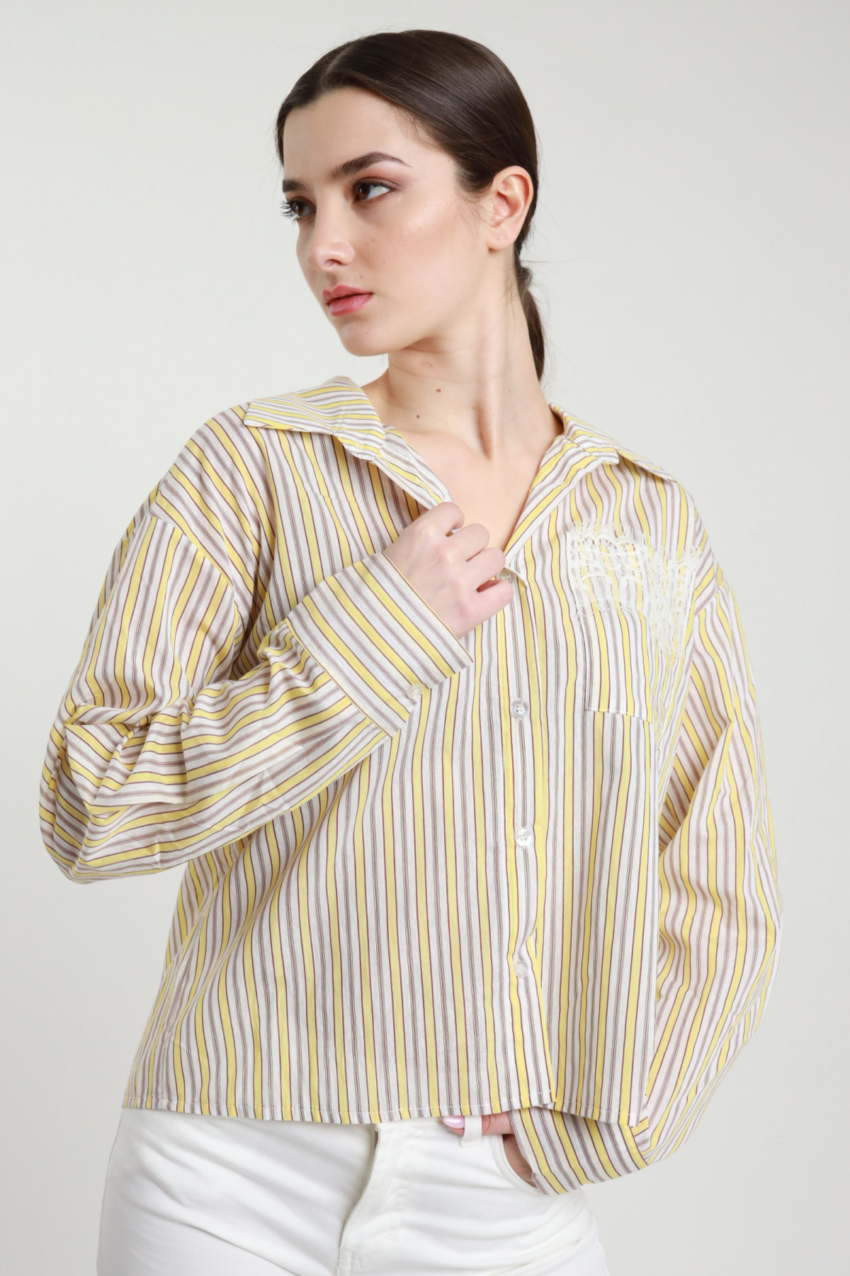 Übergroßes Nadelstreifenhemd mit Spitze an der Unterseite. 55%co 45%pl