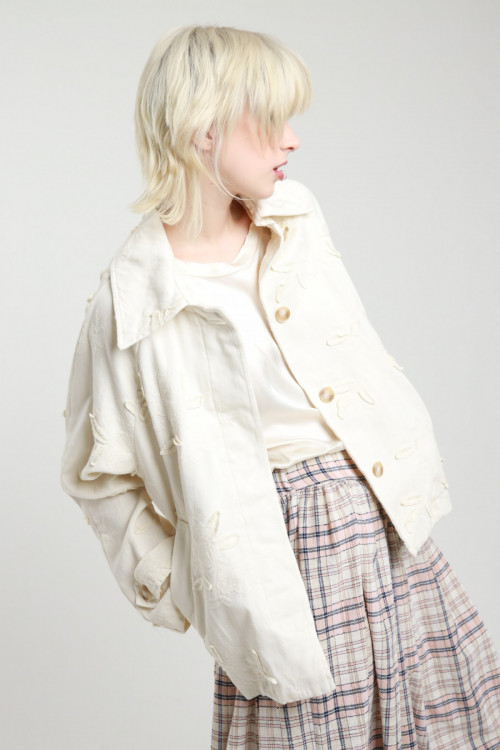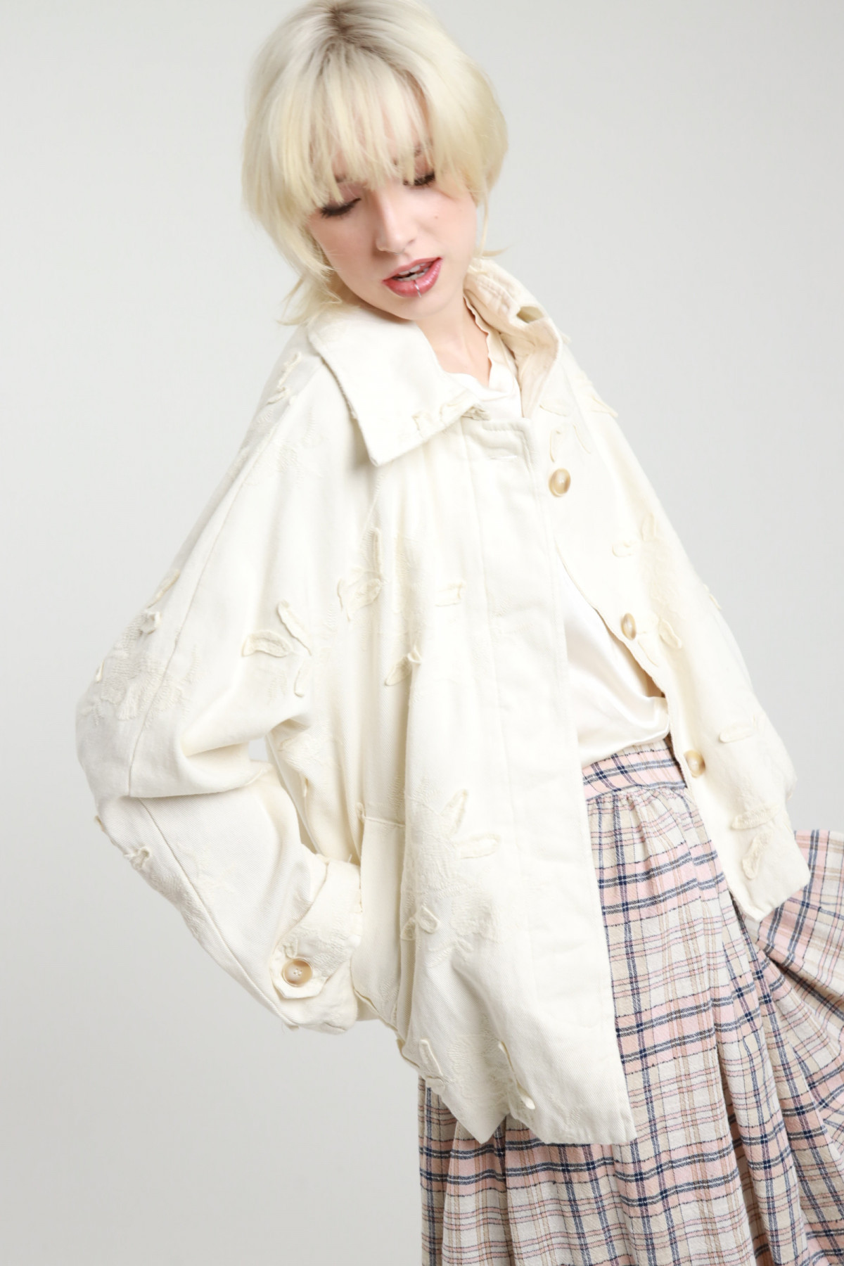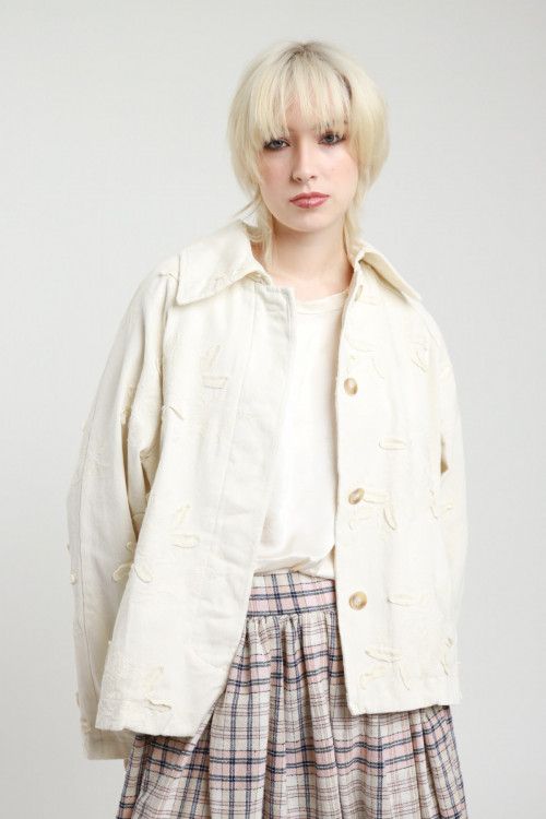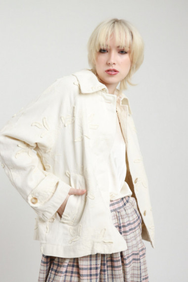 Short trench coat with embroidery, welt pockets, oversized cut, button closure. 100% co