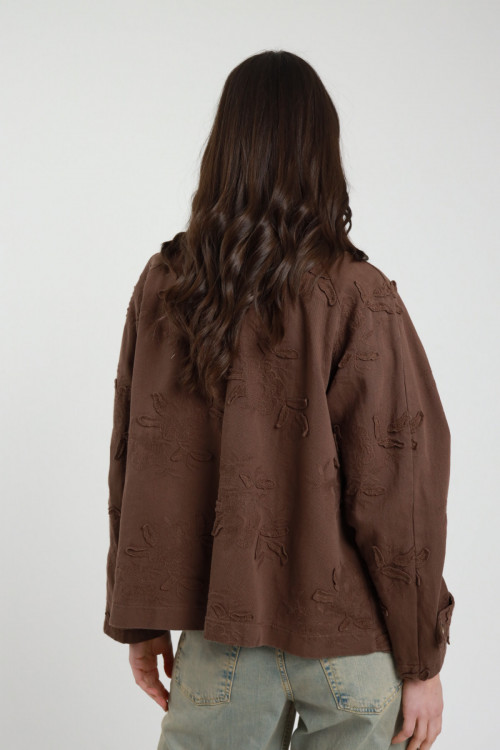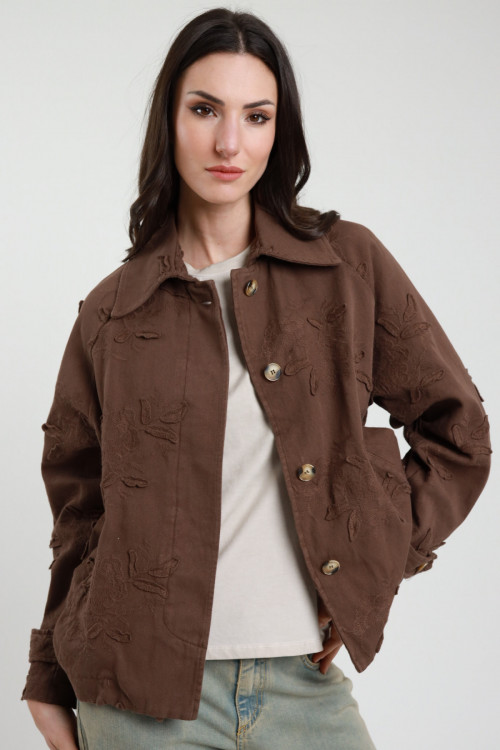 Short trench coat with embroidery, welt pockets, oversized cut, button closure. 100% co