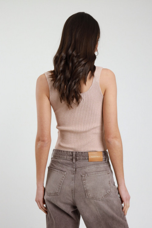 Ribbed Lurex Crop Top with Square Neckline. 90%vi 8%fm 2%ea