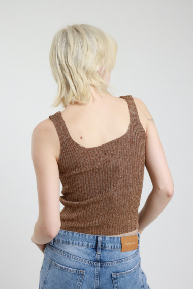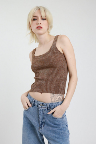 Ribbed Lurex Crop Top with Square Neckline. 90%vi 8%fm 2%ea