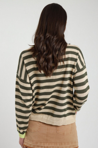 Perforierter Rundhalspullover mit Streifenmuster. 50 % CO 50 % AC