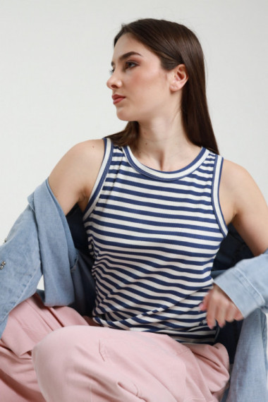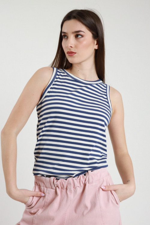 Ribbed Stretch Viscose Tank Top in Striped Pattern. 95%vi 5%ea