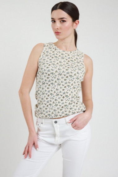 Ribbed tank top in stretch cotton, neckline in a little flower pattern. 95%co 5%ea