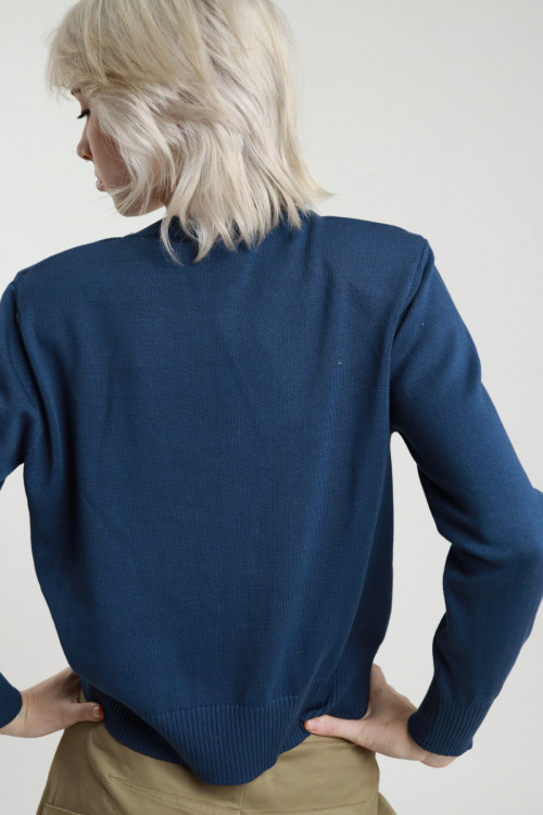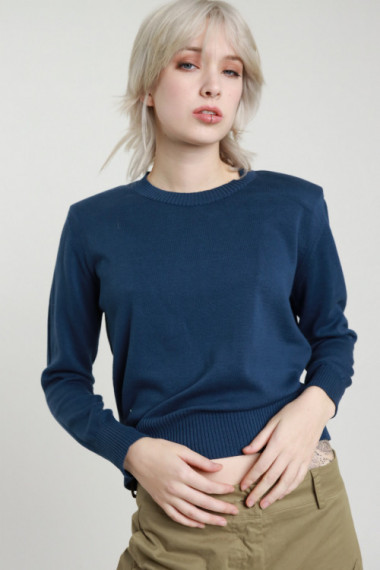 Cotton crew neck sweater with padded shoulder straps. 100%co
