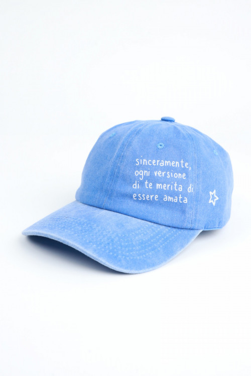 Cappello Modello Baseball con Dettaglio Strass Applicati e Rotture sulla Tesa.