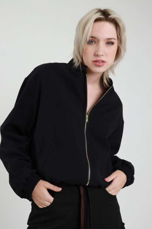 Übergroße Jacke mit 3/4-Ärmeln, klassischem Revers und Pattentaschen. 45%co 43%vi 12%ny+100%pl