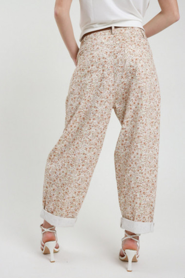 Oversized trousers, egg cut, flower print with belt. 100% co