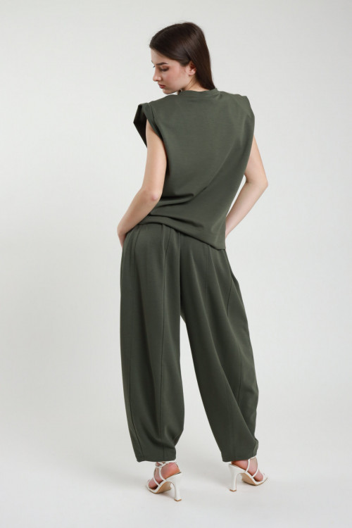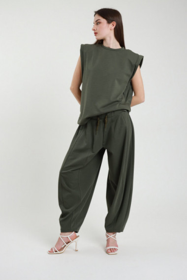 Ovetto tracksuit trousers with elastic waist, long laces and wide leg. 50%pl 45%co 5%ea
