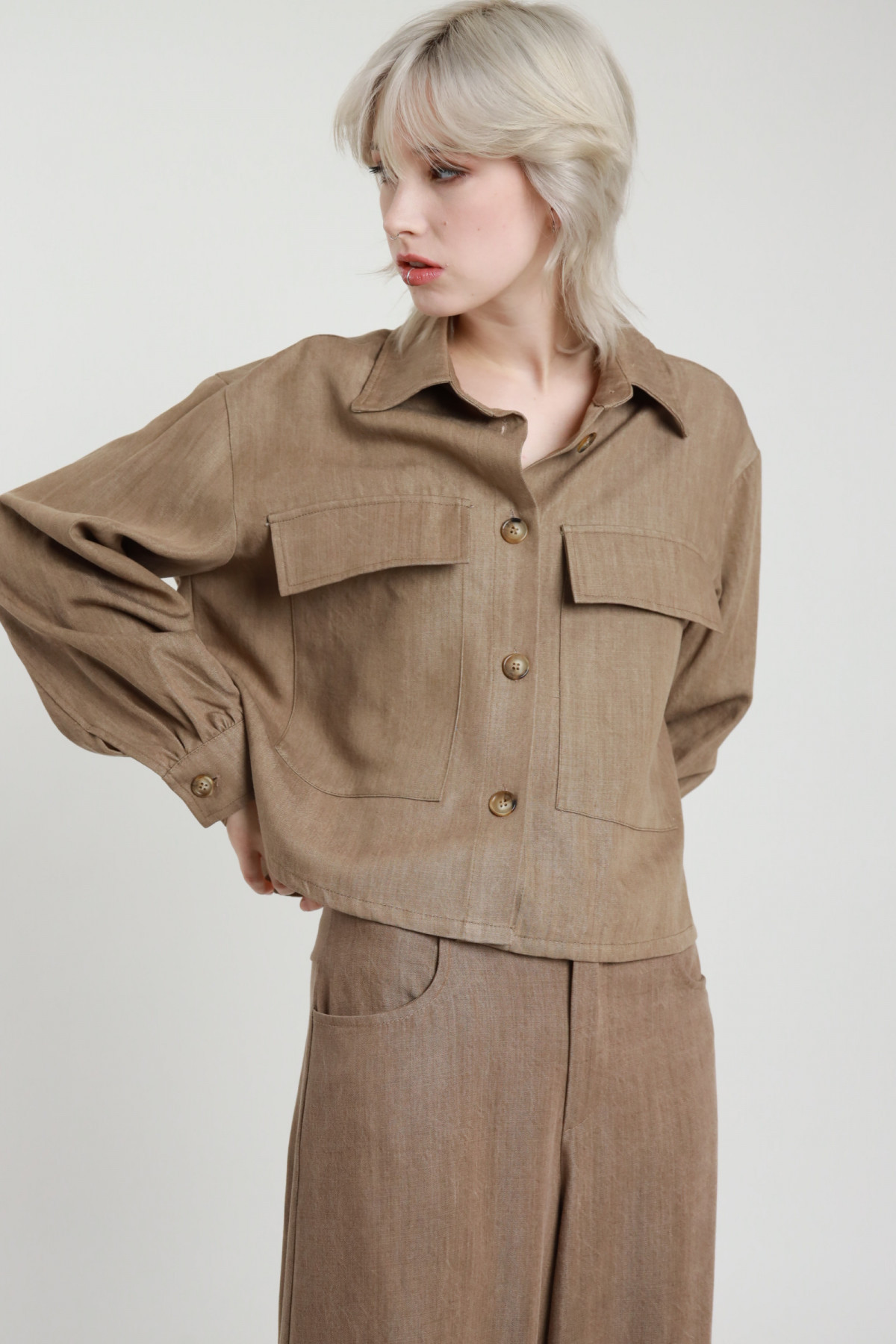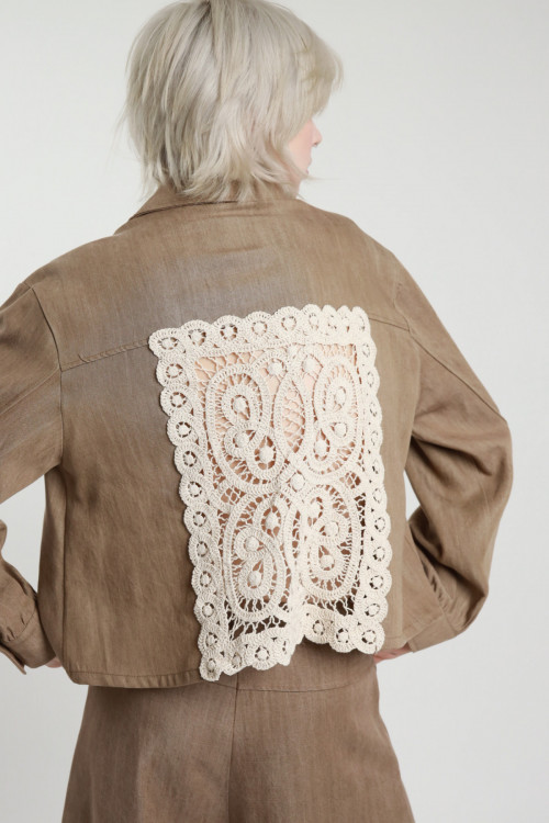 Shirt Jacket with Crochet Back, Button Closure, 2 Flap Pockets on the Front. 100%ly
