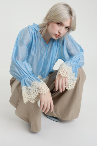 Blusa Gessata con Pizzo