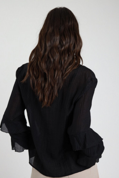 Camicia Semitrasparente con Rouches e Fiocchetti sul Fronte e sulle Maniche.
