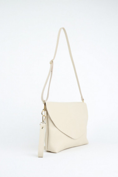 Large leather clutch bag with flap closure with clip button and removable shoulder strap. 100%lh