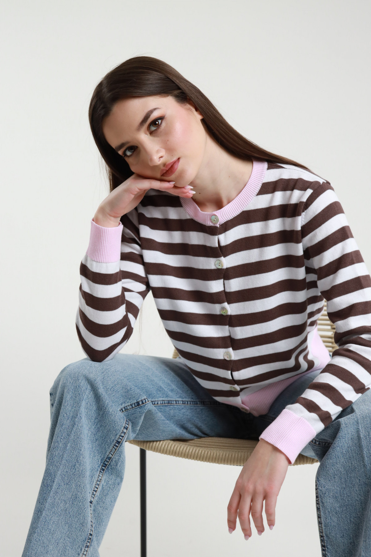 Maglia Punto Riso Manica 3/4, Scollo Barchetta. 100%co