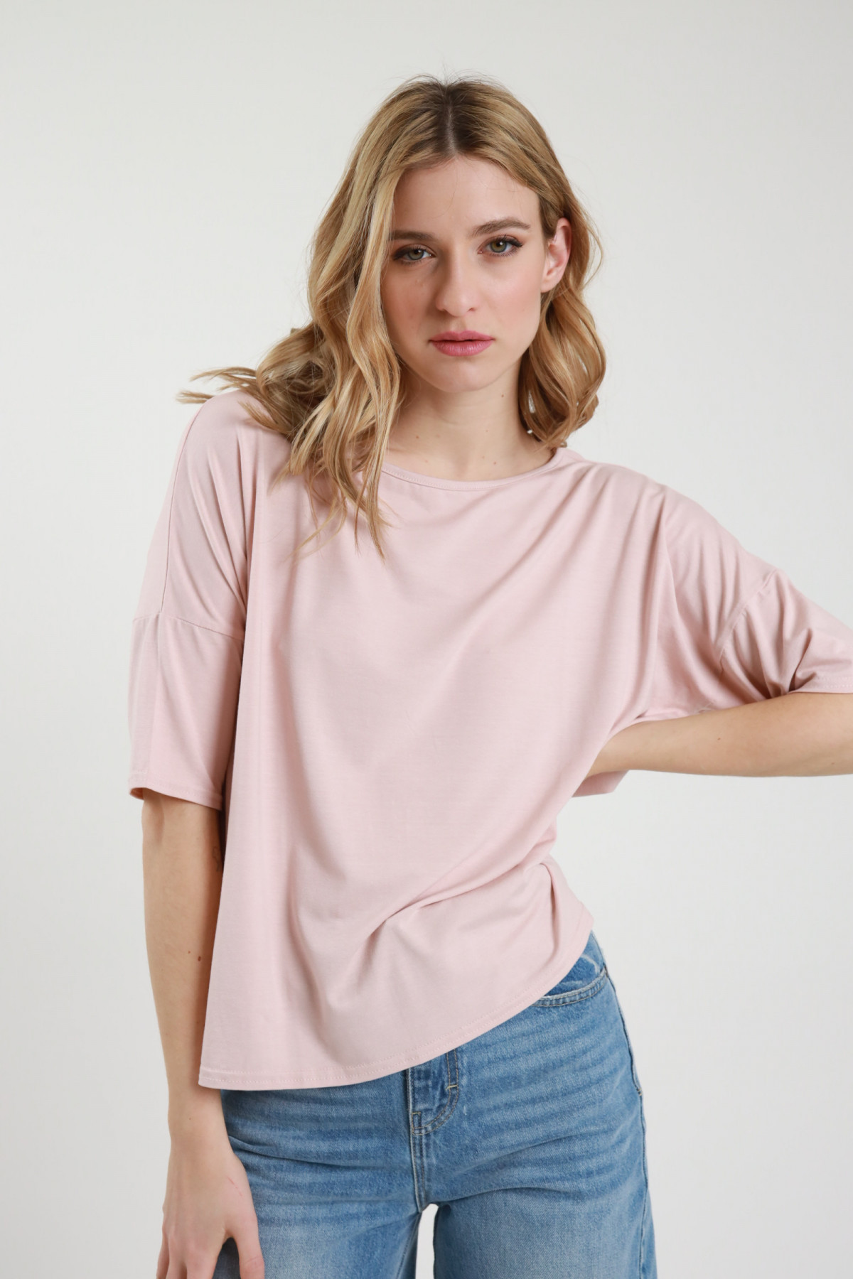 Oversized T-shirt, box cut, stretch fabric. 94%vi 6%ea