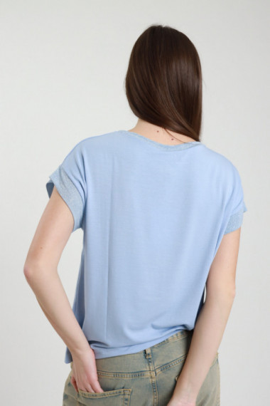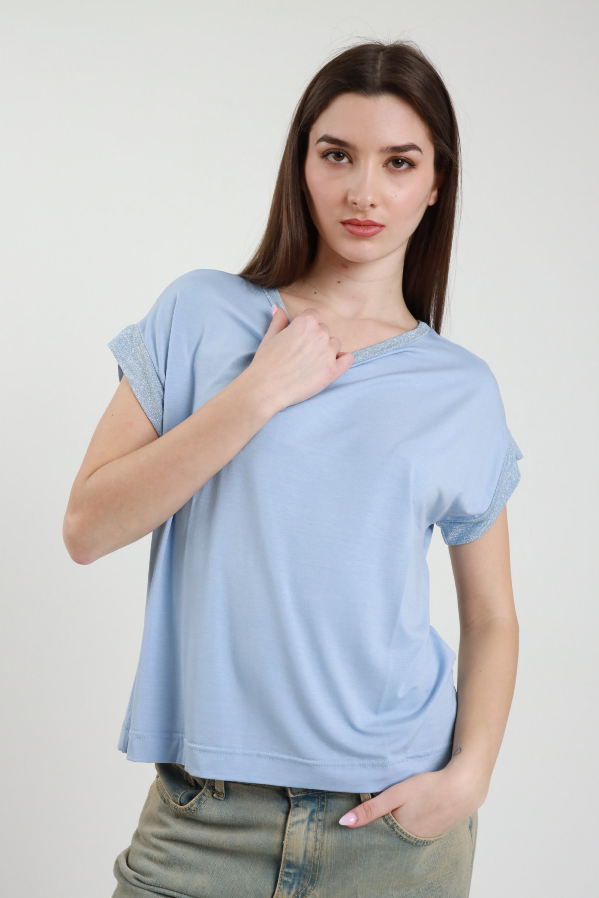 Oversized T-shirt with Lurex inserts on the edge of the sleeve and on the neck. 94%vi 6%ea