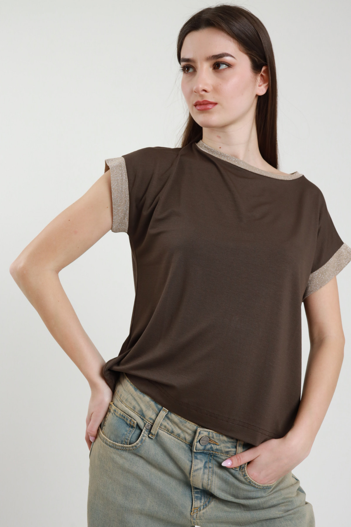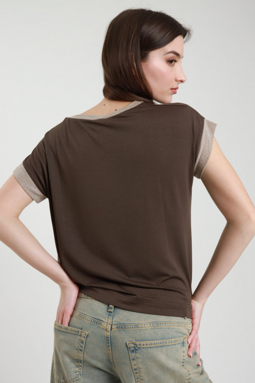 Oversized T-shirt with Lurex inserts on the edge of the sleeve and on the neck. 94%vi 6%ea