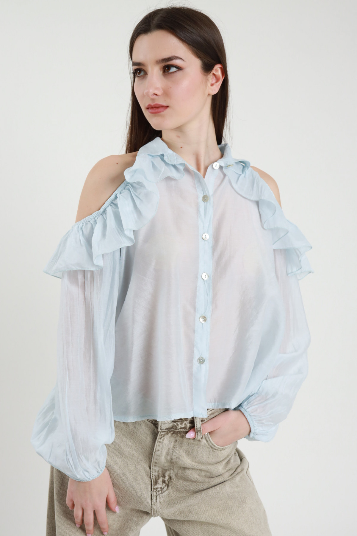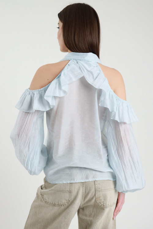 Transparent Georgette Shirt with Lace Detail on the Cuffs. 100%vi