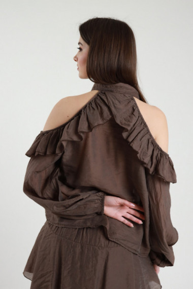 Transparent Georgette Shirt with Lace Detail on the Cuffs. 100%vi
