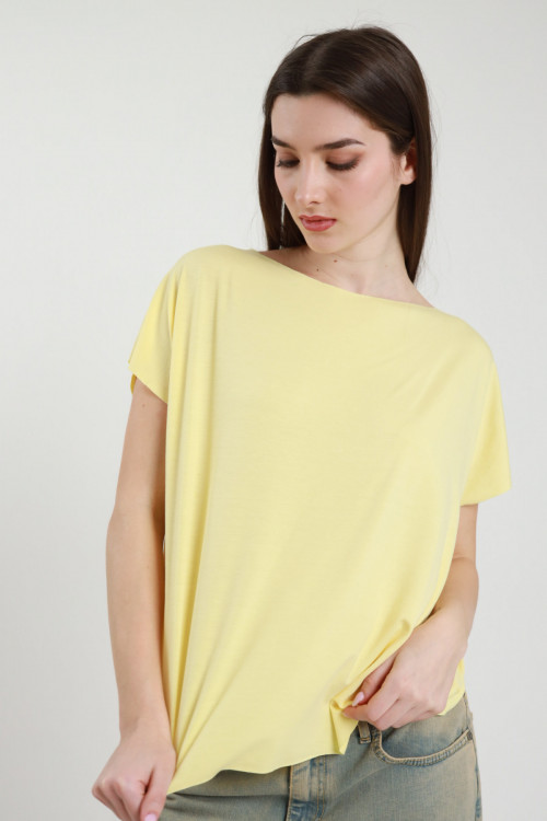 T-Shirt aus Stretch-Baumwolle mit gewaschenem Effekt, V-Ausschnitt und Nieten an den Armlöchern. 95 % CO 5 % Stück