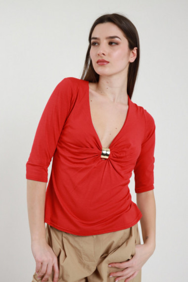 T-Shirt aus Stretch-Baumwolle mit gewaschenem Effekt, V-Ausschnitt und Nieten an den Armlöchern. 95 % CO 5 % Stück