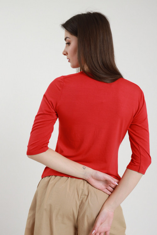 Gewaschenes T-Shirt mit V-Ausschnitt