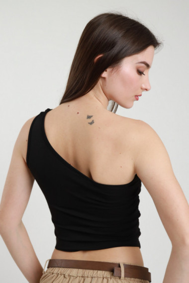 Tank top with asymmetrical straps, jewel on the front that forms curls. Slim Fit. 95%pl 5%ea