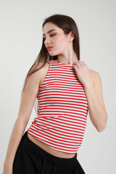 Ribbed tank top in stretch cotton, neckline in a little flower pattern. 95%co 5%ea