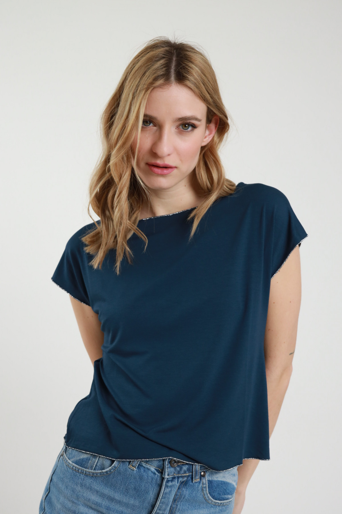 Frullino Raw Cut T-shirt With Lurex Trim. 94%vi 6%ea