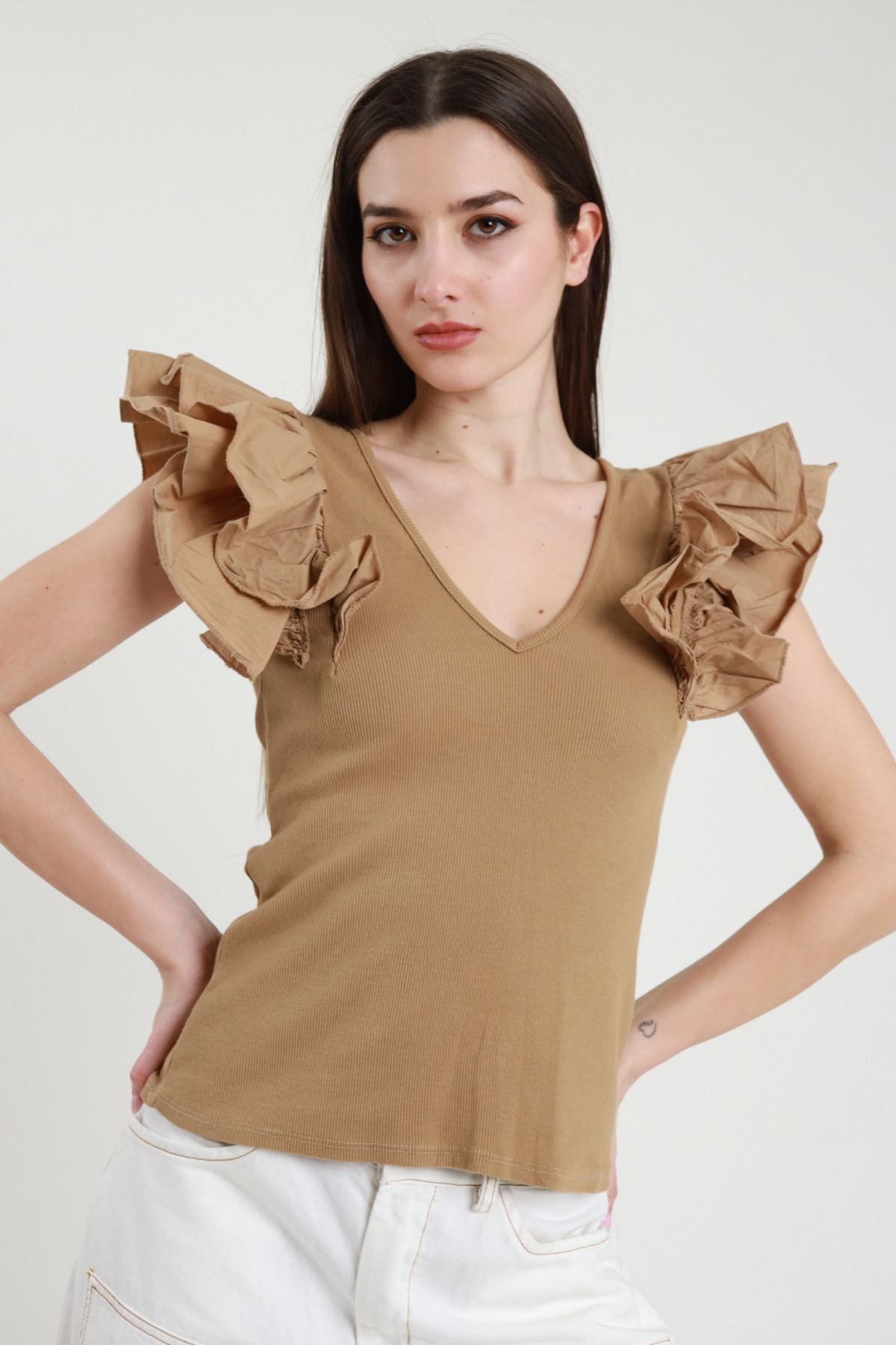 Canotta costina rouches 94%co 6%ea