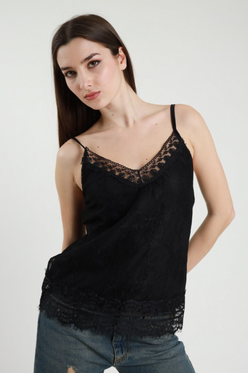 Canotta Girocollo a Costine con Passamaneria sulle Spalline.