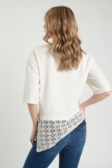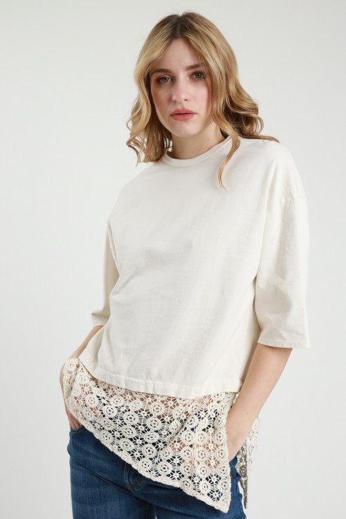 Half-sleeved crew-neck stretch cotton T-shirt with applied trimmings. 94%co 6%ea