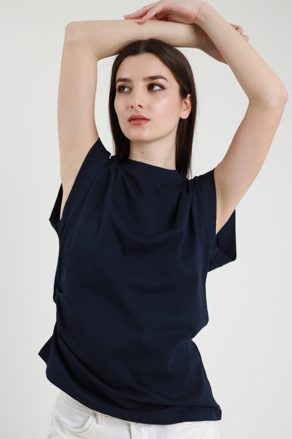 Satin Effect Stretch Viscose Blouse, Crew Neck with Lurex and Short Sleeves. 97%vi 3%ea