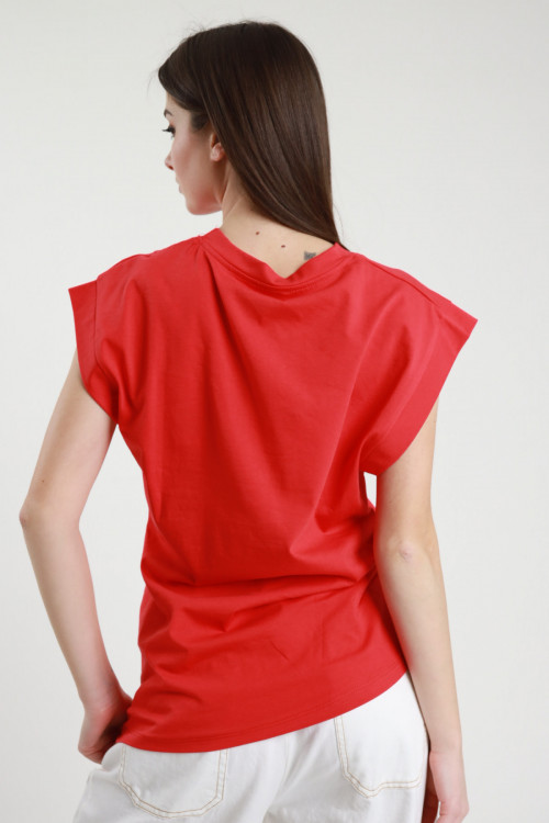 Oversized Sleeveless T-Shirt in Stretch Viscose with Padded Shoulders, in Striped Pattern. 94%vi 6%ea