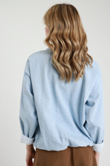 Giacca Camicia Taglio Over in Denim Lavaggio Colorato Marrone con Sbiaditure e Chiusura Bottoni. 100%co
