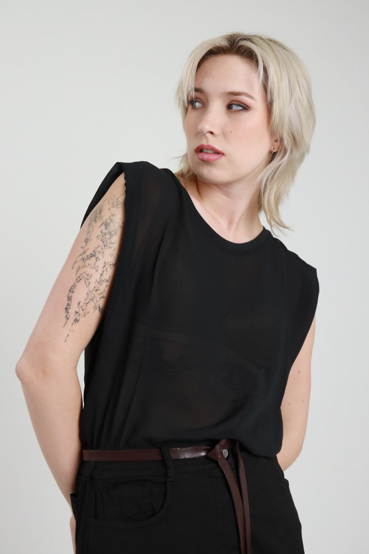 Canotta Con Spalline Asimettriche, Gioiello Sul Fronte Che Forma Arricciatura. Slim Fit.
