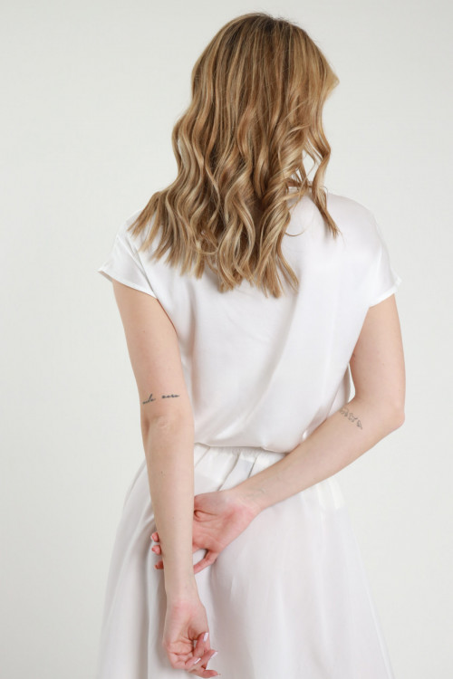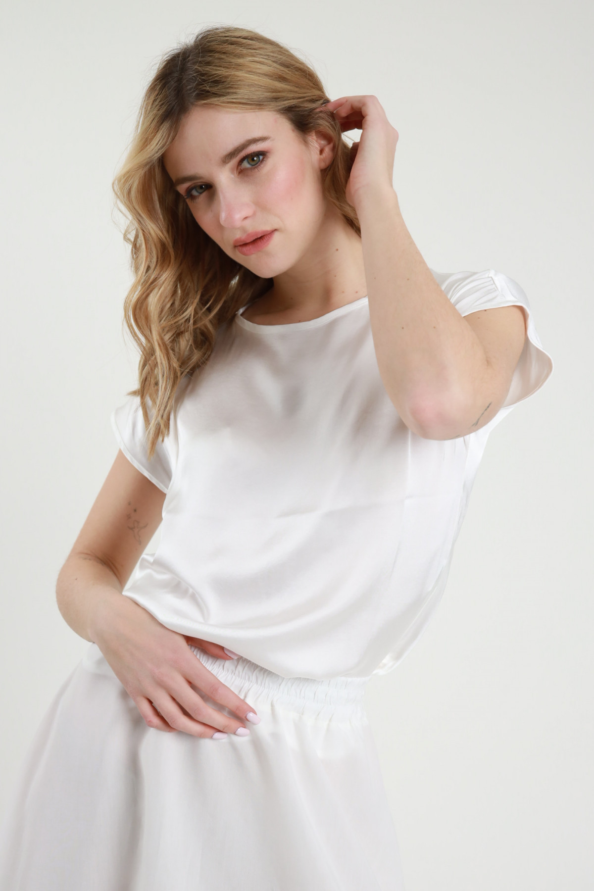 Bluse mit Rundhalsausschnitt und Bündchen aus Viskose mit Satineffekt. 100 % vi